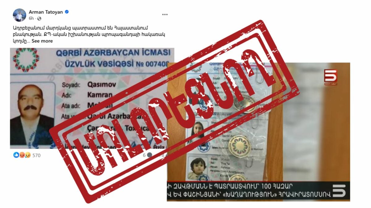 Թաթոյանը «Արևմտյան Ադրբեջան»-ի անդամության քարտը ներկայացնում է որպես ID
