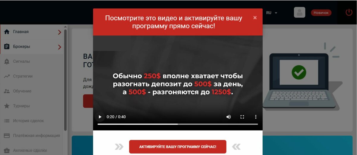 Մենք գրանցվեցինք համակարգում՝ մուտքագրելով պահանջվող տվյալները (անուն, հեռախոսահամար, էլեկտրոնային հասցե), որից հետո բացվեց նոր դաշտ, այնտեղ արդեն նշվում էր, որ 250$-ը բավարար է ավանդը օրական 500$-ի հասցնելու համար։