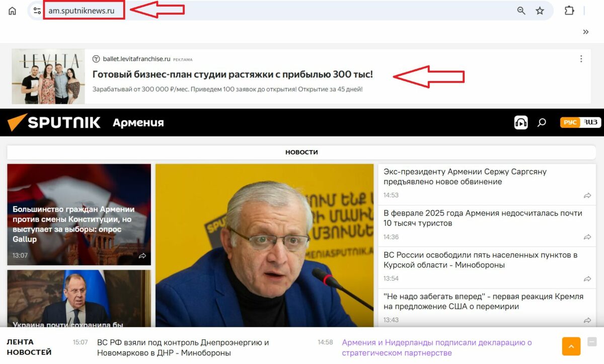 Երկու դեպքում էլ գովազդվող բովանդակությանը կցված է ռուսական պետական «Սպուտնիկ Արմենիա»-ի նմանությամբ ստեղծված կայքի հղում, օգտագործվել է լրատվական գործակալության տարբերանշանը, սակայն ուշադիր համեմատելու դեպքում կտեսնենք ակնհայտ տարբերություններ։ Առաջինը, որ աչքի է ընկնում, դոմեյնների տարբերությունն է։ Բացի դրանից, իրական «Սպուտնիկ Արմենիա»-ում կան գովազդներ։ Մյուս կողմից՝ կայքի կեղծված տարբերակում որևէ բաժին չի գործում, բոլոր բաժինների վրա սեղմելիս հայտնվում եք նույն էջում։