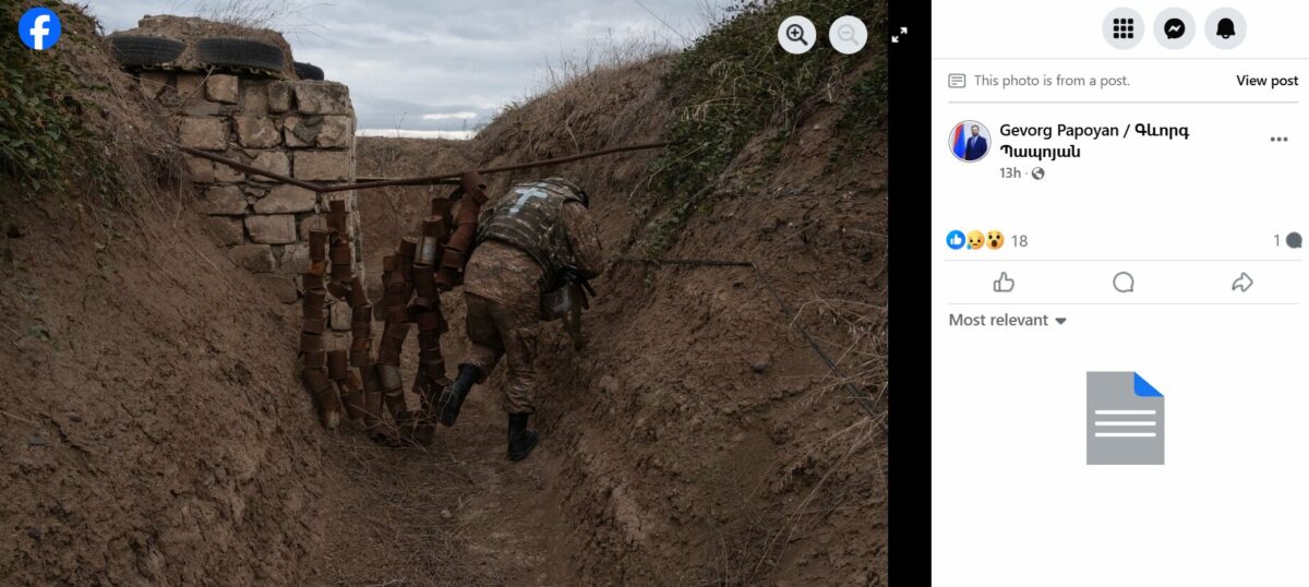 Media.am-ի փաստերի ստուգման թիմը՝ «Ստուգված է»-ն, պարզեց, որ խրամատում վազող զինվորի լուսանկարն արվել է (արխիվացված) 2020 թվականին՝ գործող իշխանության օրոք։ Դա Սեյրան Օհանյանի՝ նախարարությունում պաշտոնավարելուց մոտ չորսը տարի անց էր։