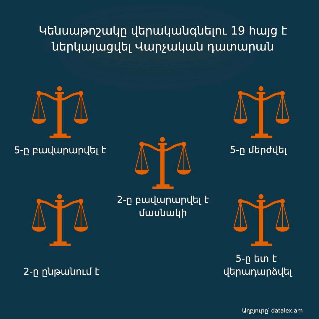 Մեկ դեպքում էլ գործը կարճվել է, դիմողի կողմից պահանջից հրաժավելու համար։ 19 գործի վարույթ ընթանում է (28.07.2025-ի դրությամբ)։