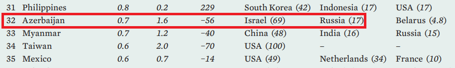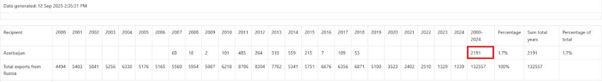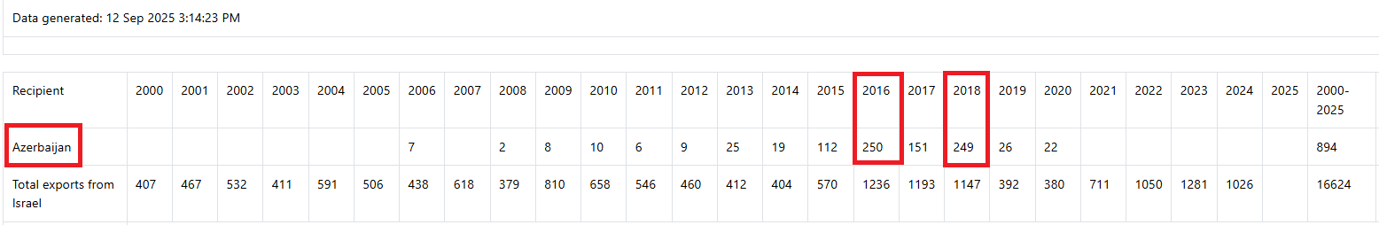 Ստոկհոլմի խաղաղության հետազոտության միջազգային ինստիտուտի՝ 2025-ի զեկույցում Ադրբեջան կատարված մատակարարումների մասին առանձին անդրադարձ չկա։