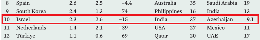 2023-ին ինստիտուտի հրապարակած զեկույցի համաձայն՝ 2018-2022 թվականներին աշխարհի 25 խոշոր զենք արտահանողների շարքում Իսրայելի երկրորդ ամենամեծ մատակարարման ուղղությունը եղել է Ադրբեջանը` կազմելով Իսրայելի ընդհանուր մատակարումների 9.1%-ը։