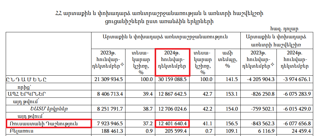 Իսկ նախորդ տարի՝ 2024-ին, հունվարից դեկտեմբեր ընկած ժամանակահատվածում փոխադարձ առևտրաշրջանառությունը կազմել է 12 միլիարդ 401 միլիոն դոլար, ոչ թե 9 միլիարդ՝ ինչպես նշում է Հայաստանի վարչապետը։